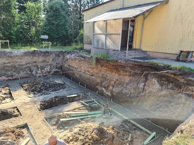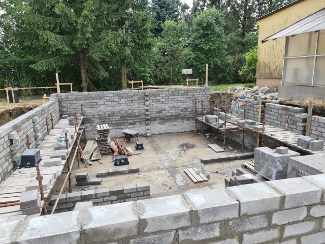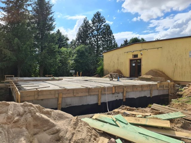 Budynek został rozbudowany o nową część parterową, częściowo podpiwniczoną o wymiarach 12,25x 12,22m w technologii tradycyjnej murowanej. W nowej części na poziomie parteru wydzielone zostały pomieszczenia biurowe, socjalne, sanitarne. W części piwnicznej budynku zostały wydzielone pomieszczenia magazynowe.